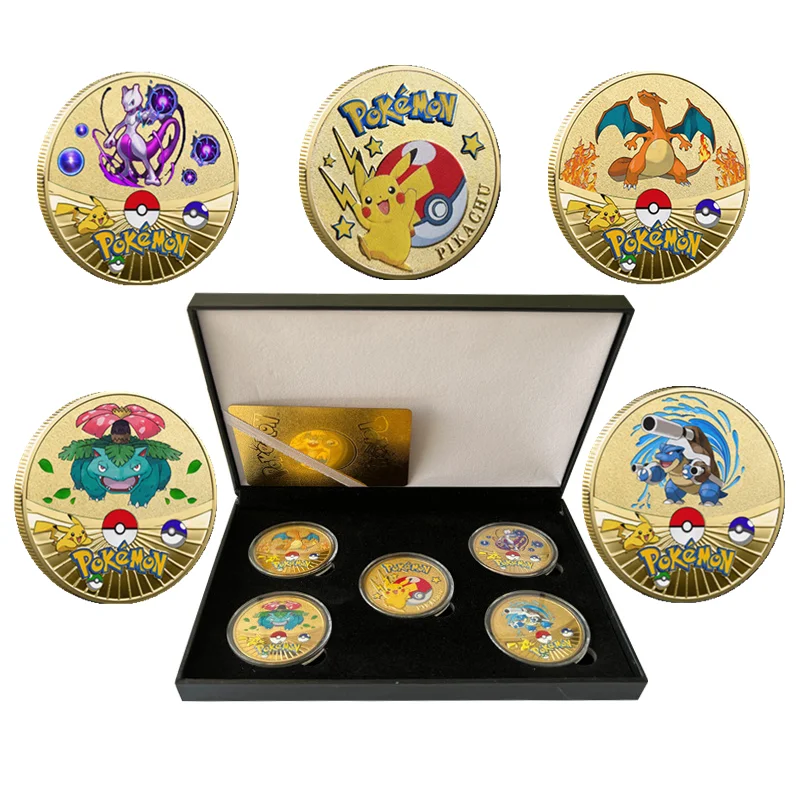 New Pokemon Coin Metal Pikachu Charizard Patterns Gold Color 41Patterns Boxed Collection Anime child Gifts Toys - Купить с бесплатной доставкой