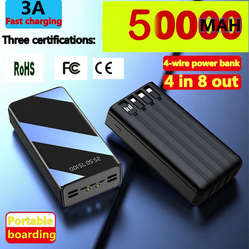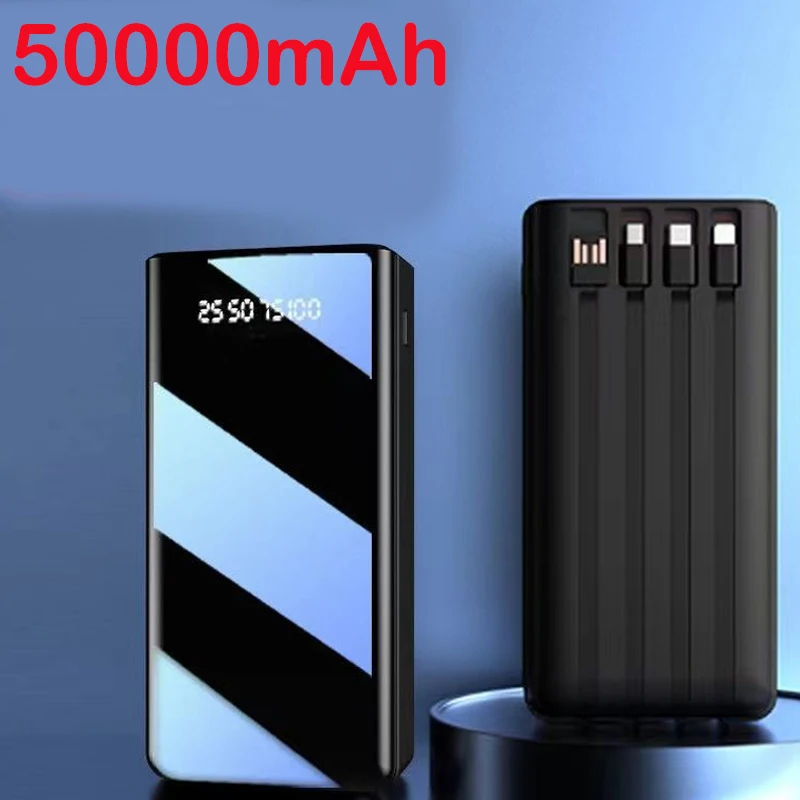 New Power Ban50000mAh TypeC Micro USB Fast Charging Powerbank LED Display Portable External Battery Charger for Phone Tablet - Купить с бесплатной доставкой