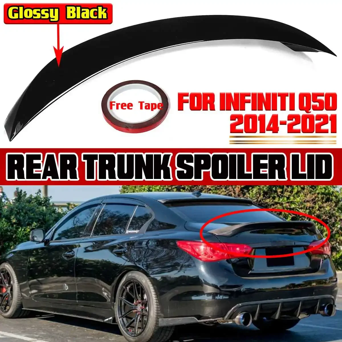 PraoKjjfDHere you can buy New Q50 RS Style Car Rear Spoiler Wing Trunk Lip For Infiniti Q50 2014-2021 ABS Car Rear Trunk Spoiler Lip Boot Wing Body Kit with free delivery to your post office.