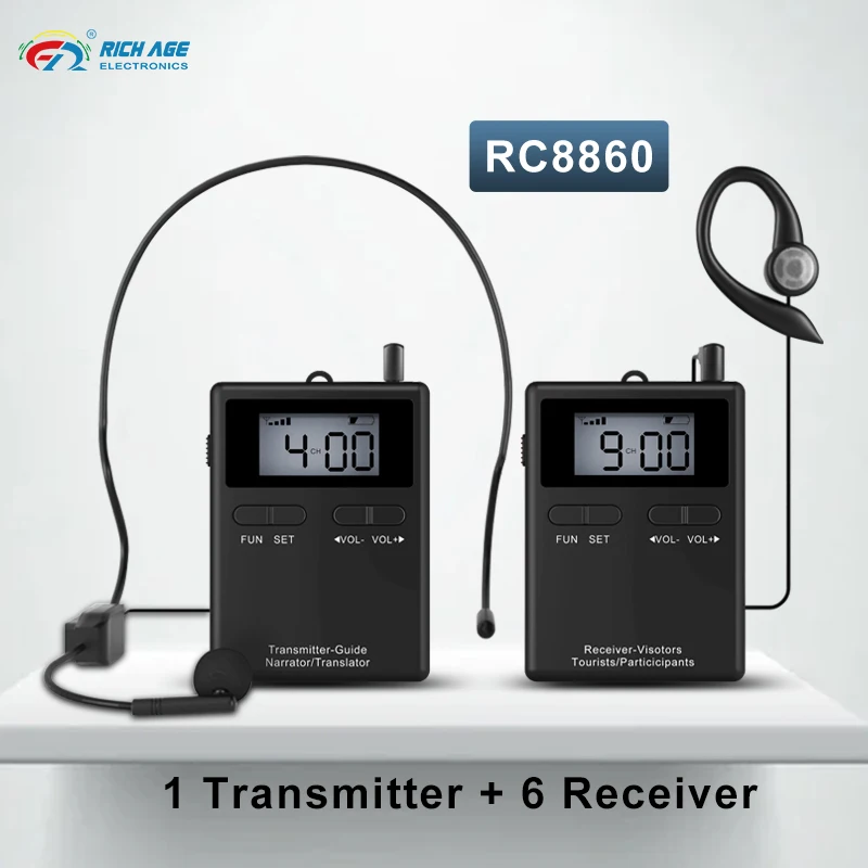 New RC8860 Tour Guide System 1 Transmitter Plus 6 Receivers With Microphone And Headphones For Riding Church Meetings Teaching - Купить с бесплатной доставкой
