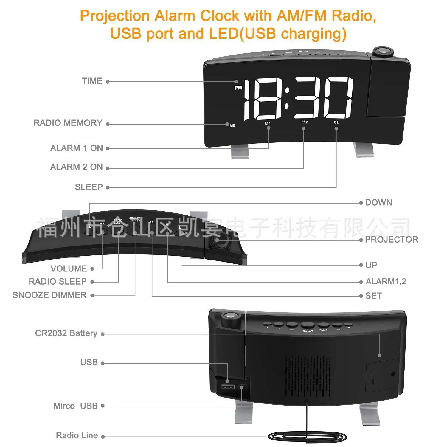 bPJSEGJCLxHere you can buy New Radio Alarm Clock USB Charging Always Bright Projection Clock Fashion Curved Large Screen Table Clock Home Decoration Clock with free delivery to your post office.