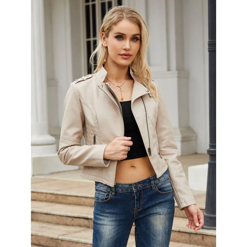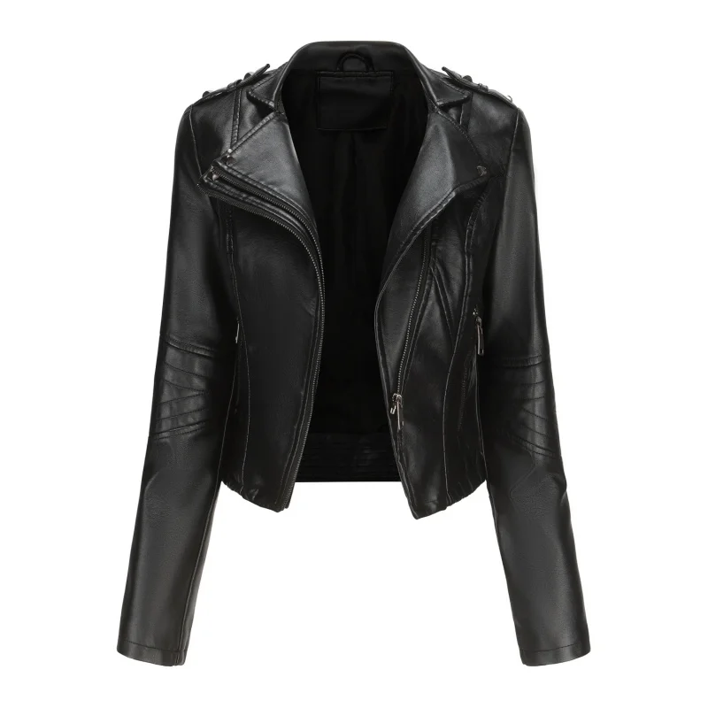 SEpXbcQqGXHere you can buy New Slim-Fit Long-Sleeved Spring and Autumn Leather Jacket Women's Rivet Popular Short Jacket Zipper Leather Jacket with free delivery to your post office.
