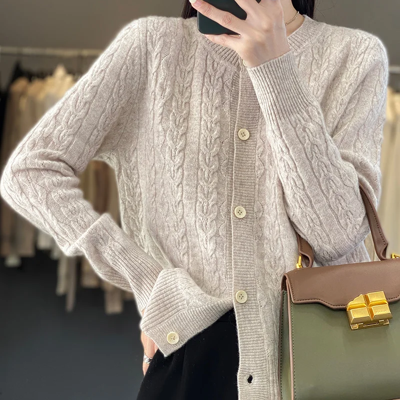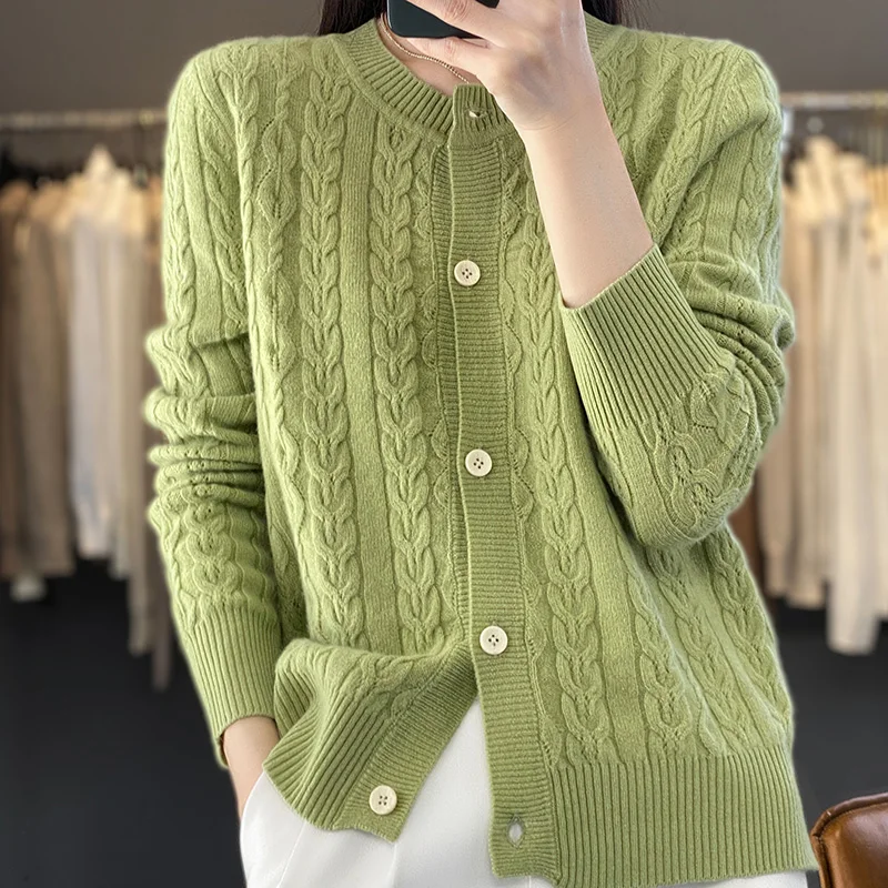 «New Spring Autumn Pure Wool Cardigan Women's O-neck Merino Wool Knitted Jacket 2023 Korean Westernized Pure Color Versatile Top.» по лучшей цене на рынке! Всего за 31$ (2945рублей)