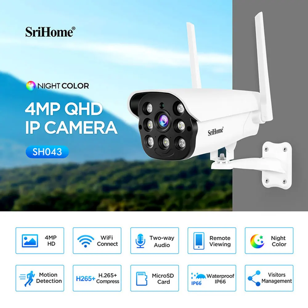 New SriHome SH043-4MP 1440P WIFI IP Camera two-way audio H.265 Onvif Metal Bullet Home 4MP Color Night Vision Security Camera - Купить с бесплатной доставкой
