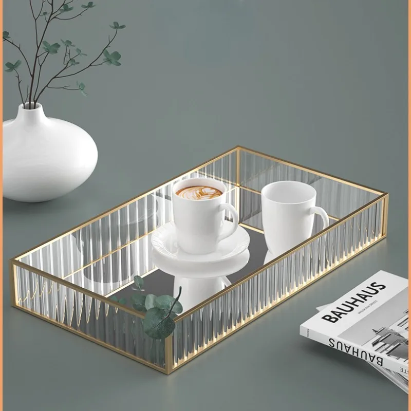 xsABJJMXafHere you can buy New Striped Glass Storage Tray Rectangle Dresser Cosmetic Storage Box Desktop Storage Box Metal Frame Mirror Tray Home Decor with free delivery to your post office.