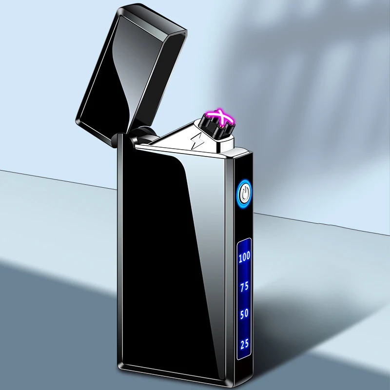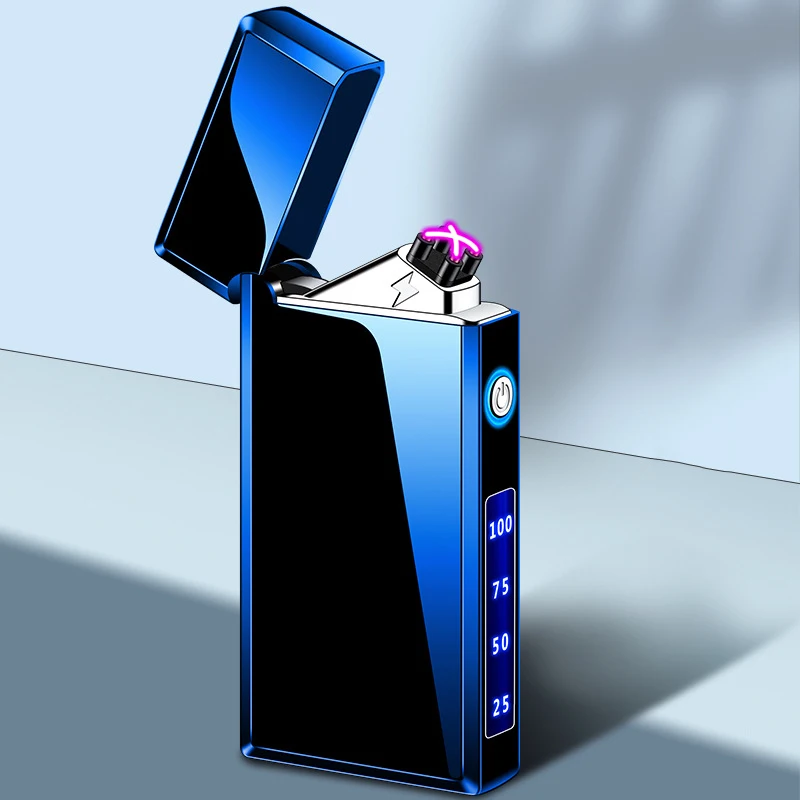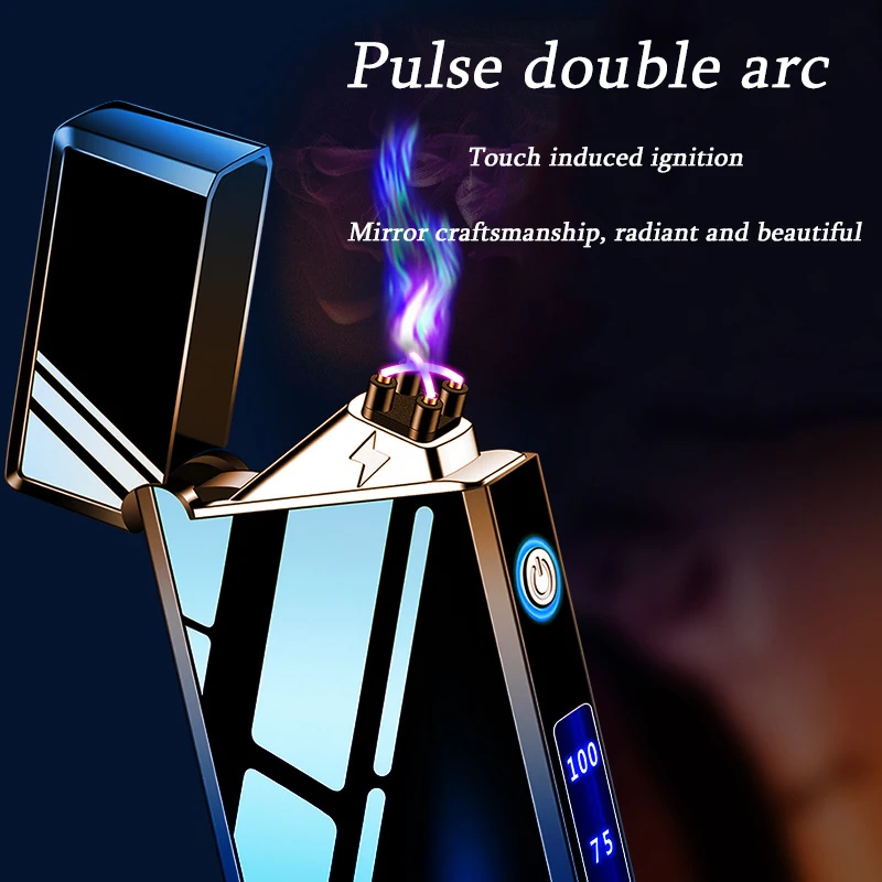 New Trend Intelligent Touch Ignition Flameless And Windproof Lighter Metal Mirror LED Power Display Plasma Double Arc Lighter - Купить с бесплатной доставкой