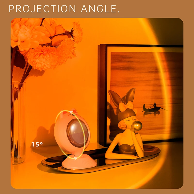 New USB Rabbit Sunset Projector Indoor Photo Atmosphere Background Lighting Sunset Cute Pet Neon Wall Creative Gift Night Lights - Купить с бесплатной доставкой