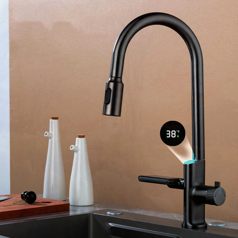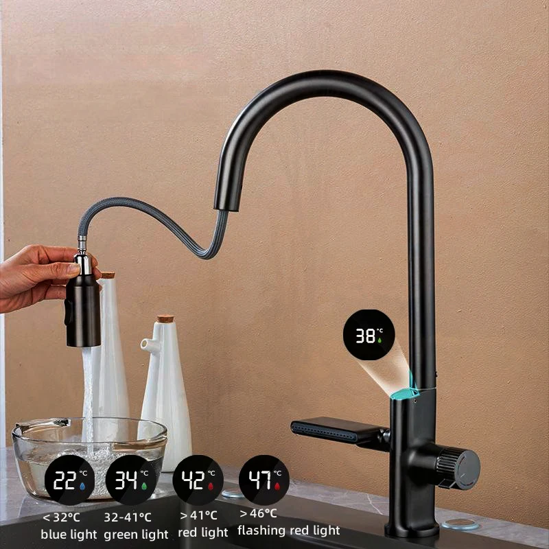 yqHsLzQTCzHere you can buy New Waterfall Digital DisplayTemperature Sensor Kitchen Faucet Pull Out Stream Sprayer Hot Cold Water Sink Mixer Tap For Kitchen with free delivery to your post office.