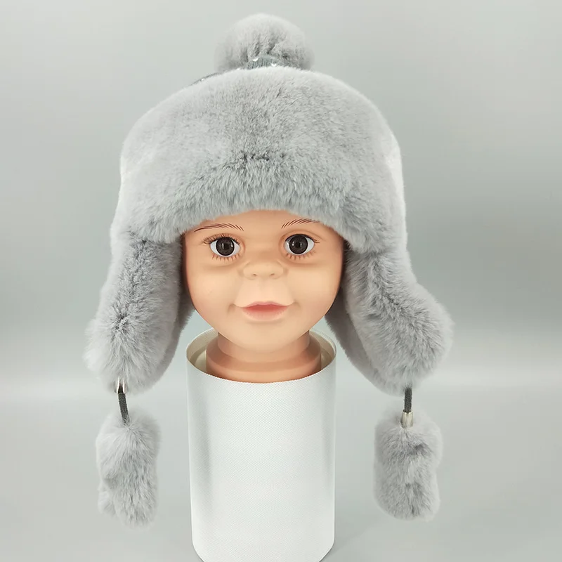 LRdGMTOVЗдесь вы сможете купить New Winter Cartoon Boys And Girls' Cap Rex Rabbit Fur Whole Leather Warm Ear Protection Wool Cap Wool Ball Solid Color с бесплатной доставкой до вашего почтового отделения.