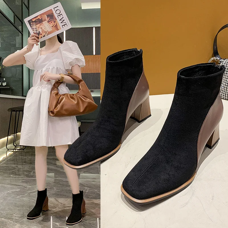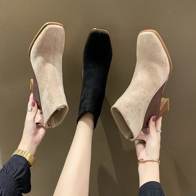 «New Women Boots Ankle Boots Faux Suede High Heels Ladies Short Boots Concise Square Toe Breathable Female Shoes Winter Warm 2021» по лучшей цене на рынке! Всего за 6$ (570рублей)