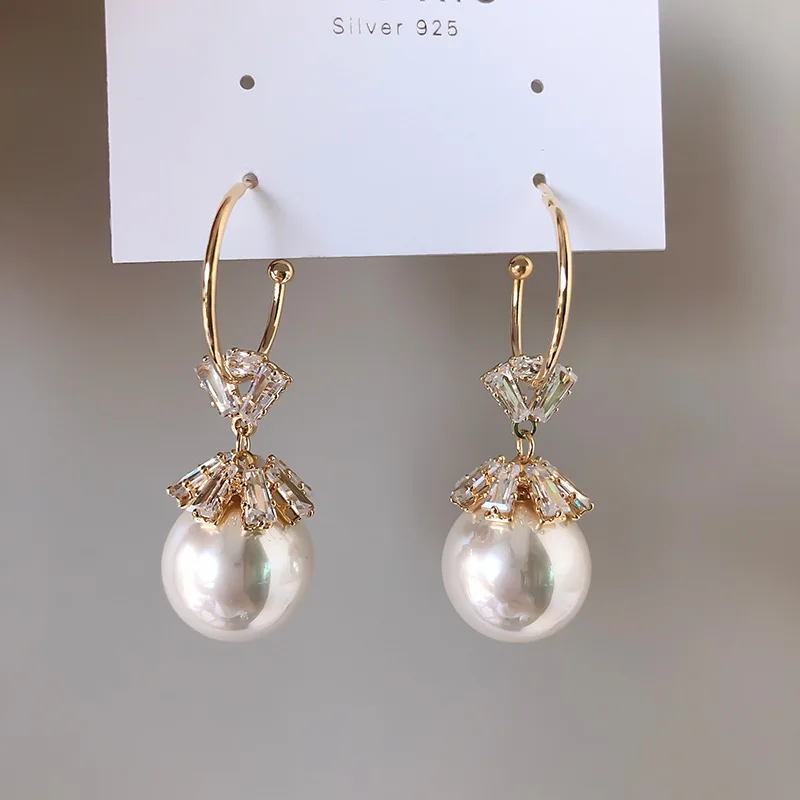 «New Zirconia Snowflake Pearl Earrings Female Temperament Fashion C-shaped Earrings Jewellery» по лучшей цене на рынке! Всего за 3$ (285рублей)