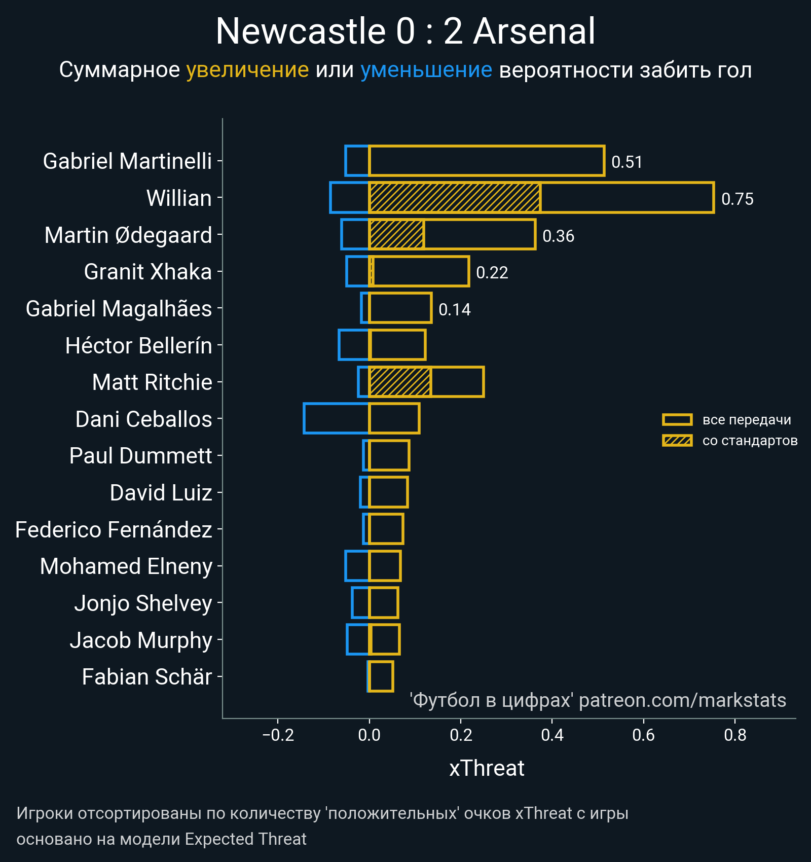 Очки xThreat с игры: