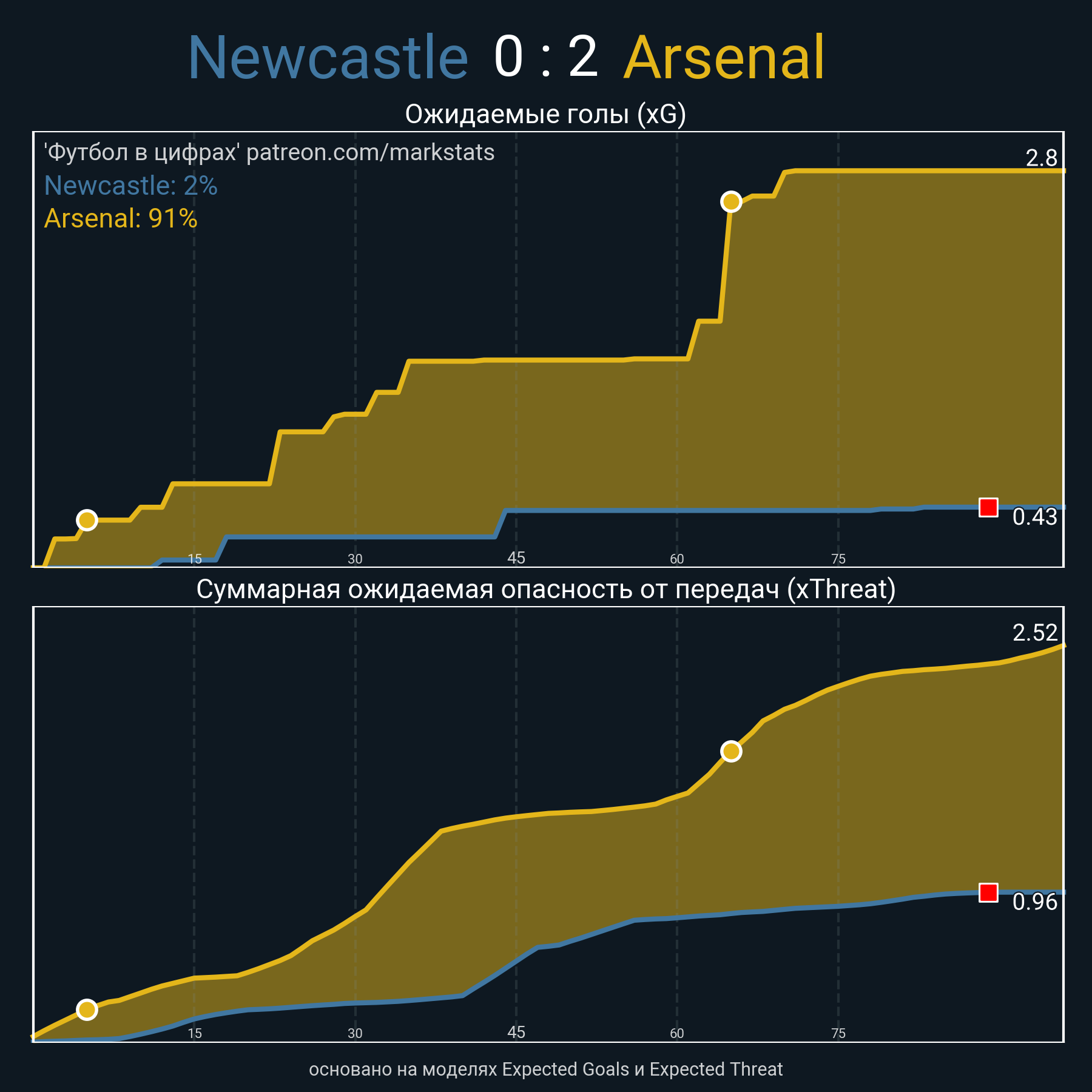 ▪ Ожидаемые голы (NPxG): 0.43 - 2.8
