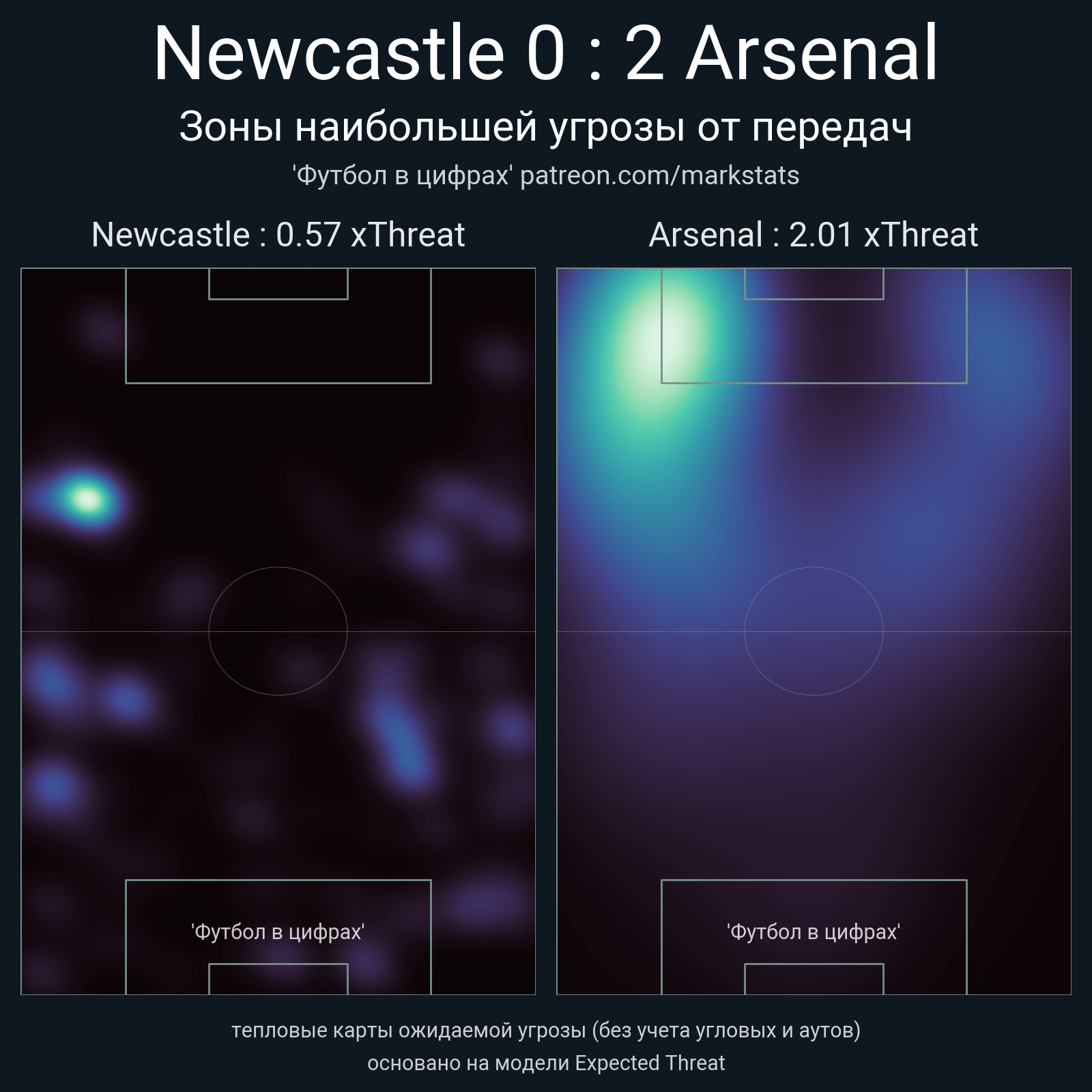 ▪ xThreat без учета угловых: 0.57 - 2.01