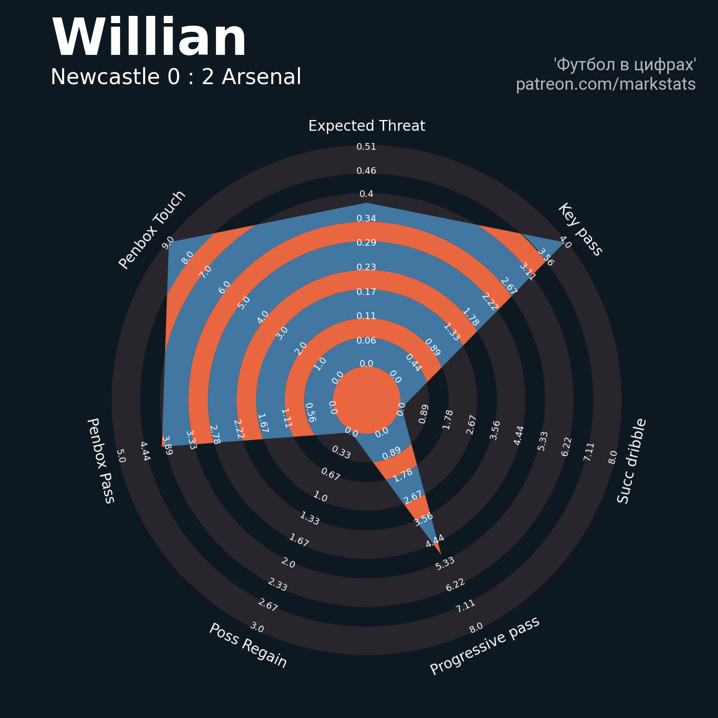 ▪ 0.51 очка xT (+0.0 со стандартов)