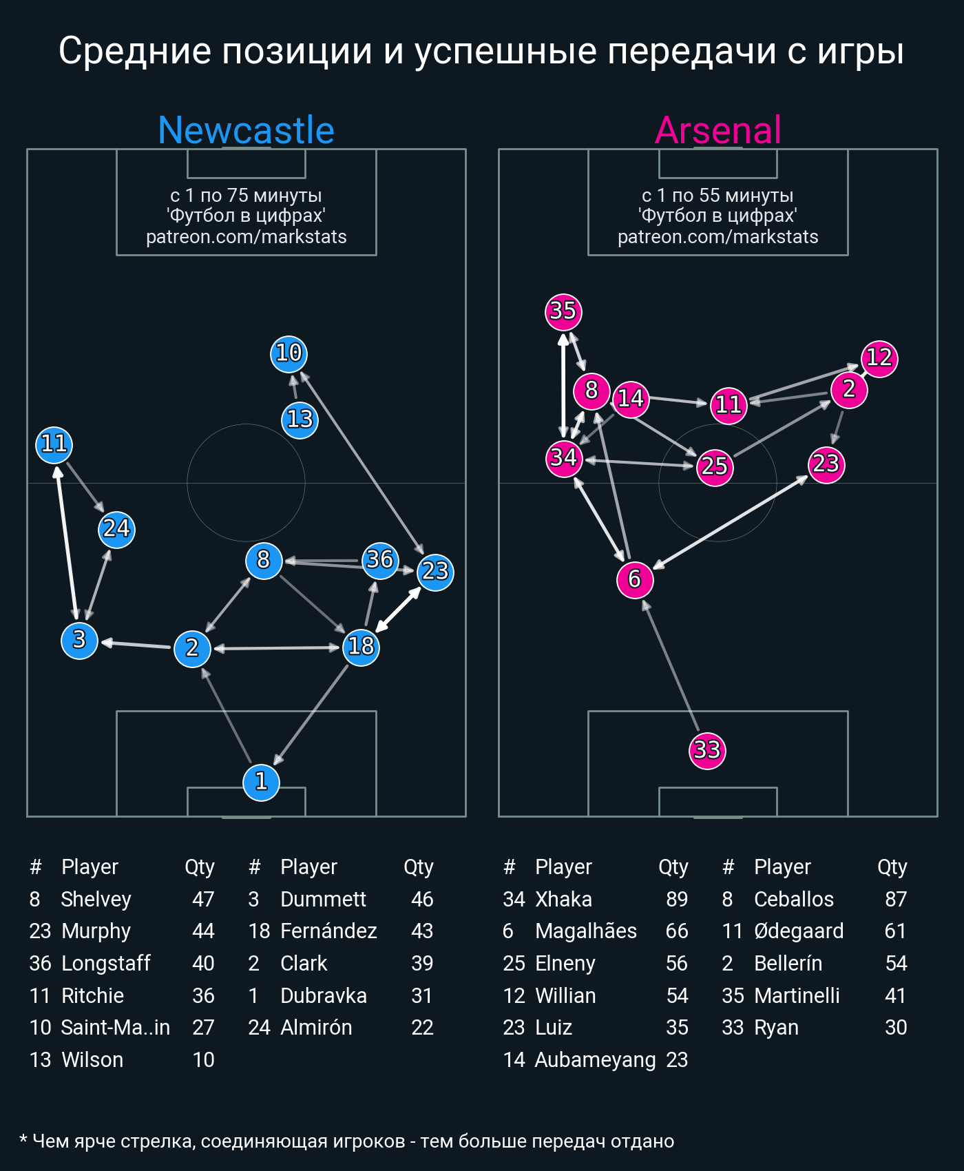 Футбол в цифрахСтатистика матча Newcastle - Arsenal
