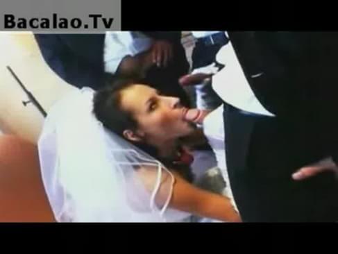 Newly Wed Gang Bang 6min - 360p - 278,194 A lovely bride takes on three horny guys, she blows one cock, gives the other a handjob while another one jacks off infront of her . She loves the attention and all the hard and big cocks on her face .