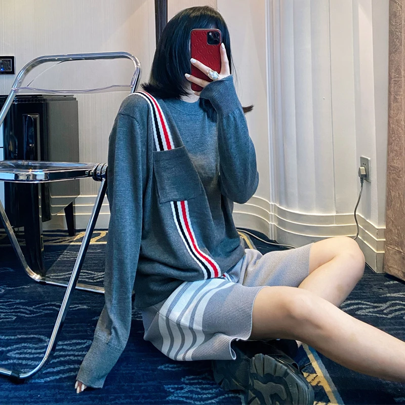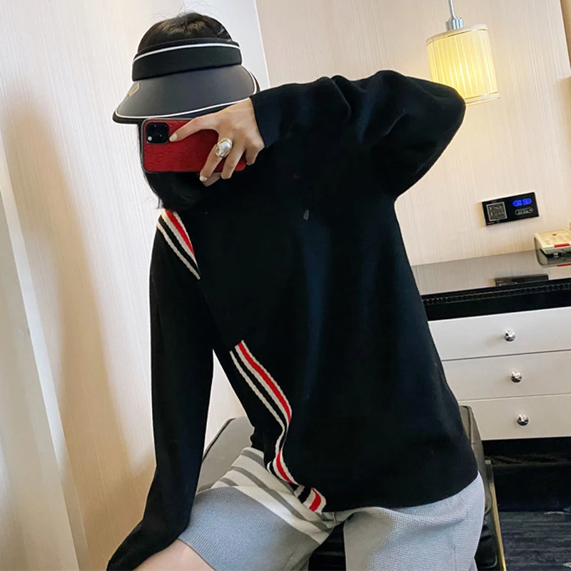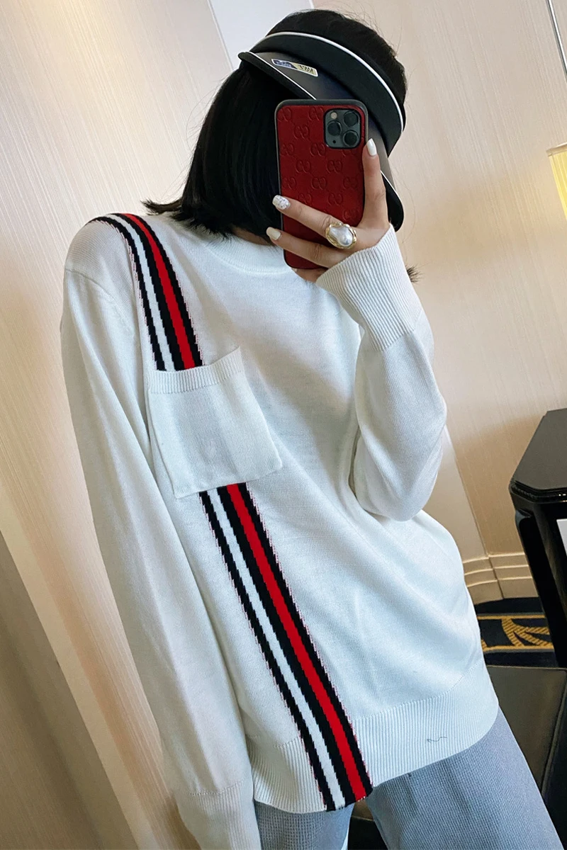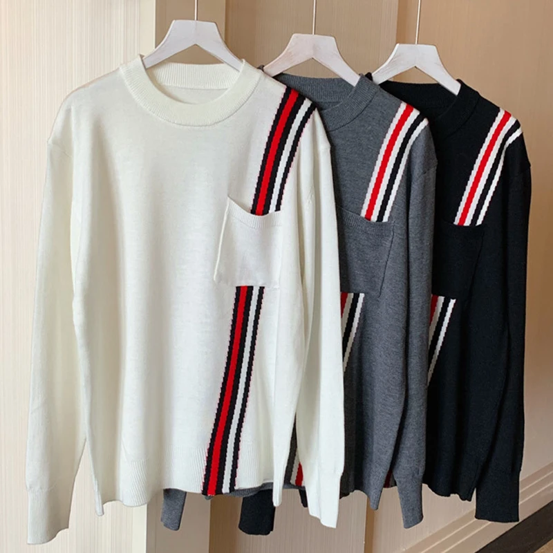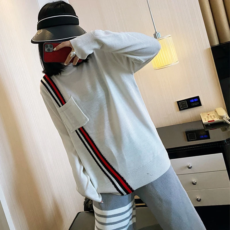 «Newsweater women's round neck loose and lazy style red white and blue diagonal stripes tb knitted sweater pullover bottoming top» по лучшей цене на рынке! Всего за 51$ (4845рублей)