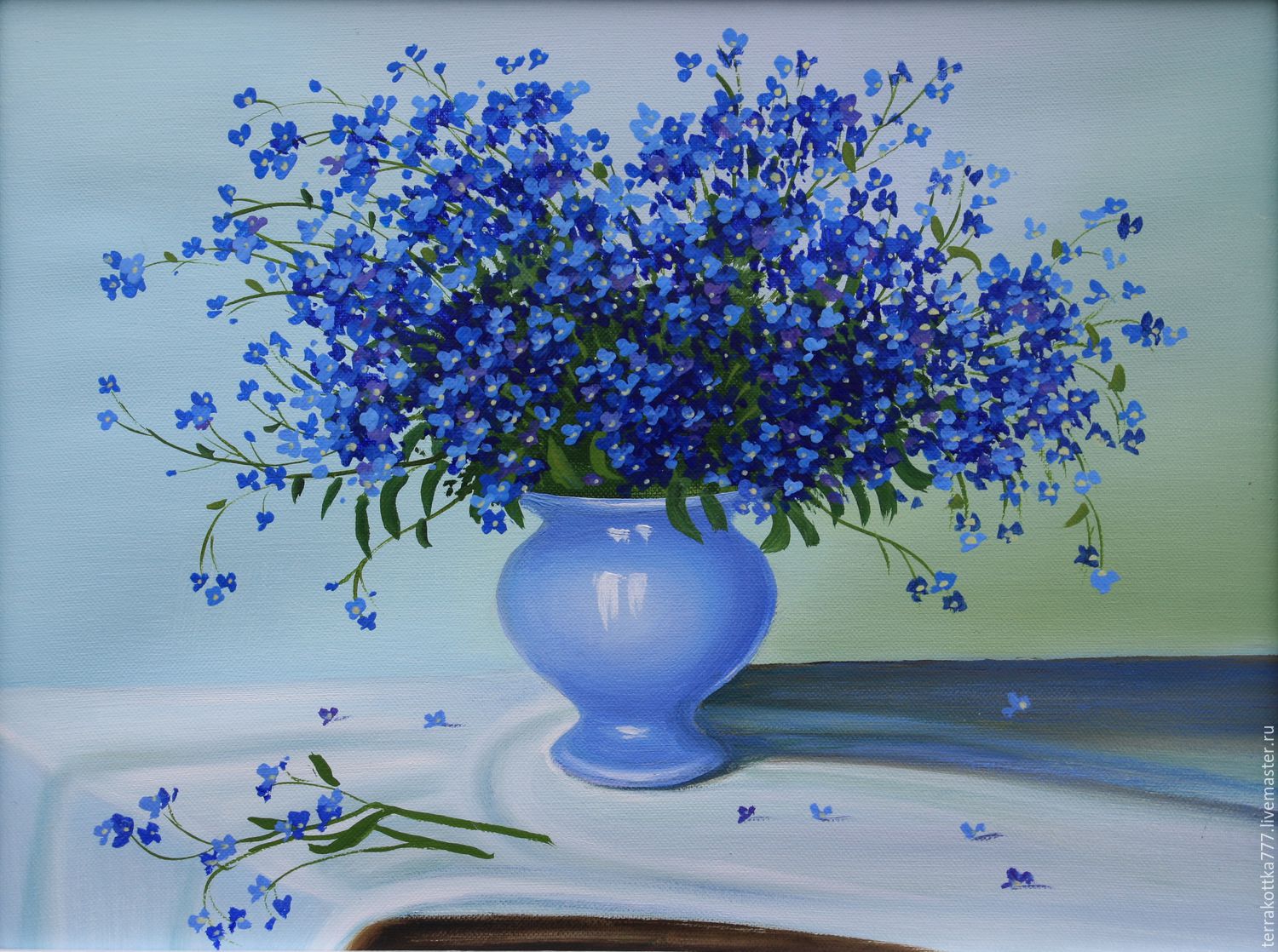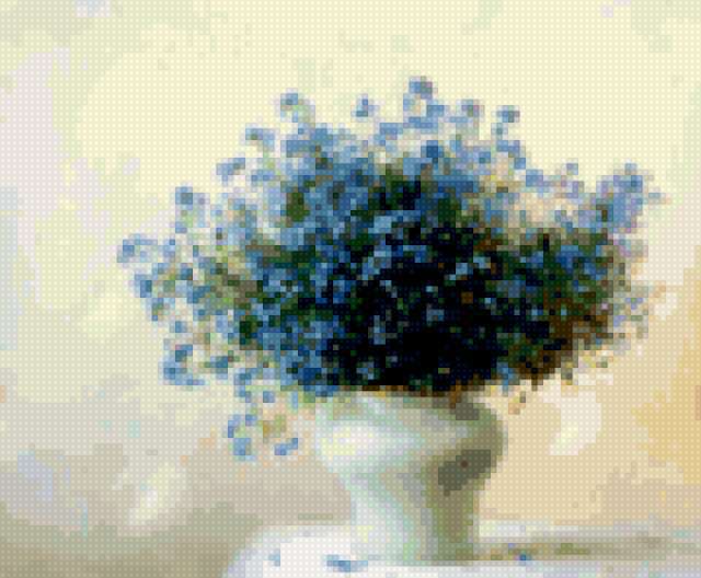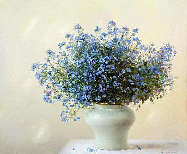 Картина с цветами "Незабудки"- цветы в вазе - заказать на . . .