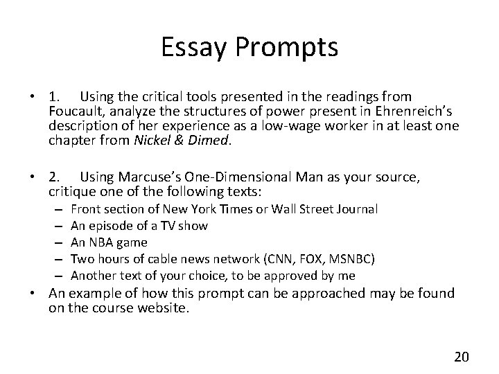 Essay Exam Sample Questions
