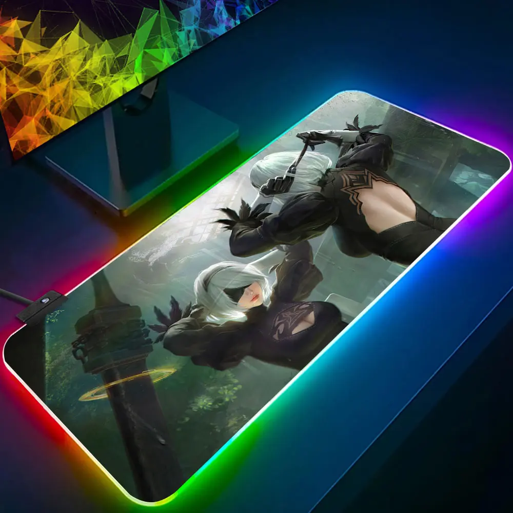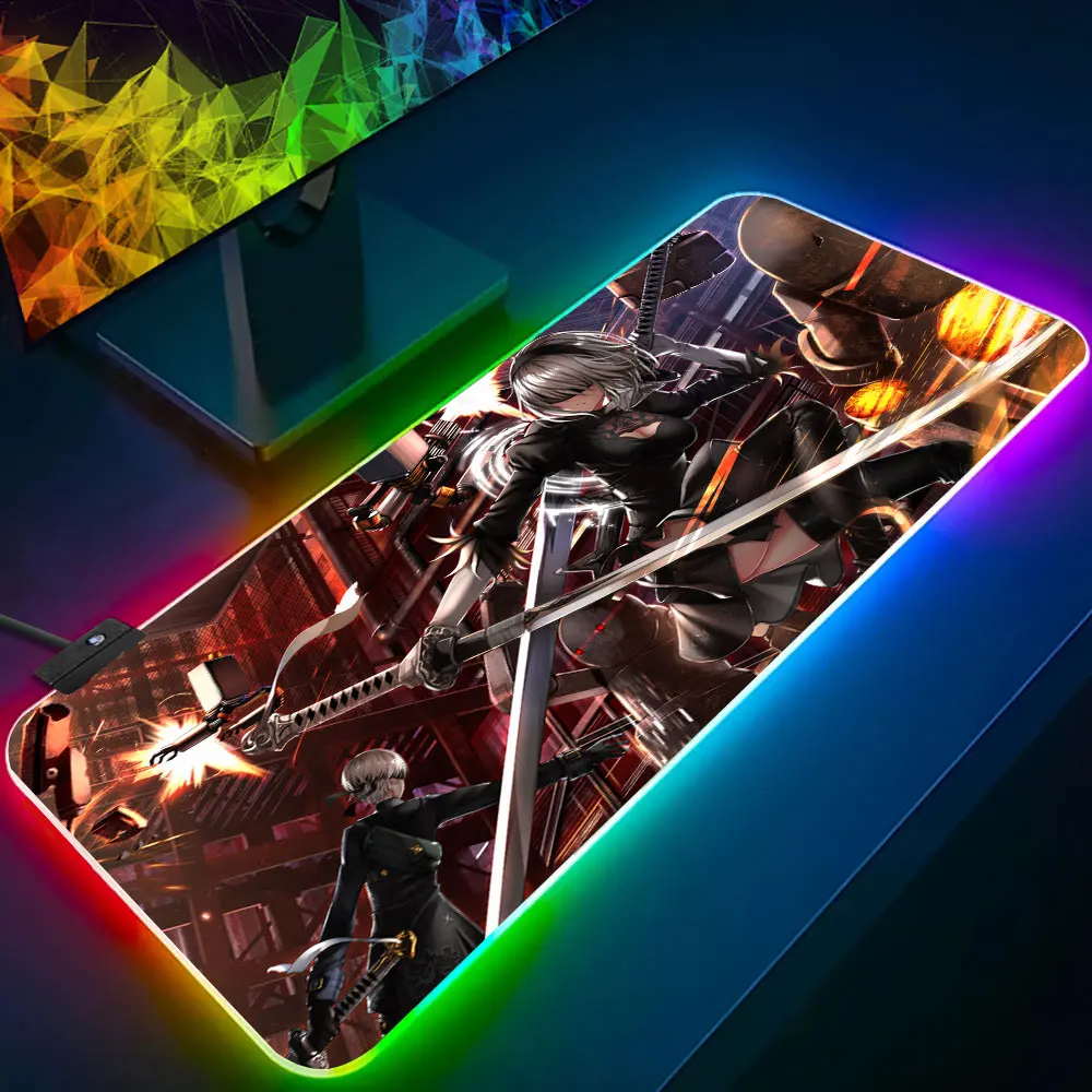 "NieR Automata RGB Pc Gamer Keyboard Mouse Pad Mousepad LED Glowing Mouse Mats Rubber Gaming Computer Mausepad" * Buy Now Just For 20$