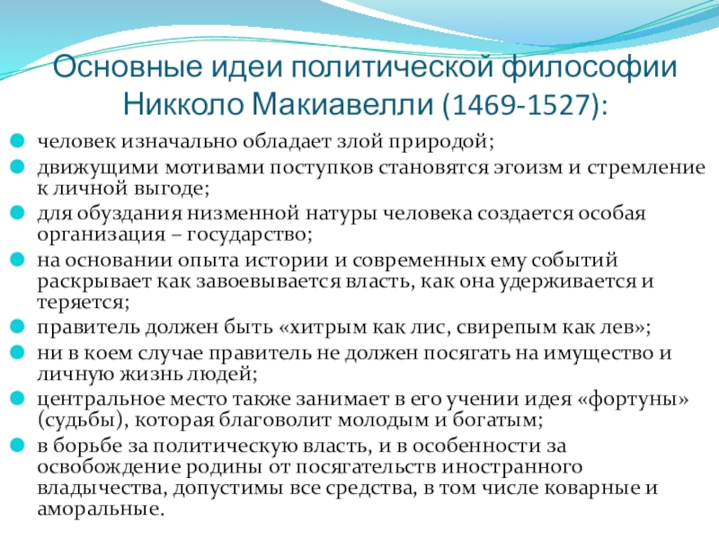 Никколо макиавелли основные идеи