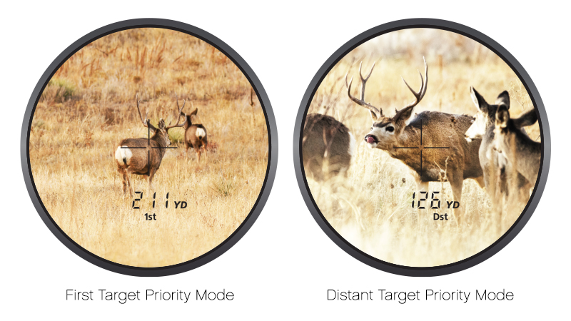 PROSTAFF 1000 ti consente di identificare rapidamente il bersaglio con il suo versatile sistema di scelta di priorità del bersaglio . Di fronte a soggetti sovrapposti puoi scegliere tra il modo Priorità al primo bersaglio per visualizzare la distanza dal soggetto più vicino e il modo Priorità al bersaglio lontano, che misura la distanza rispetto al soggetto più lontano .