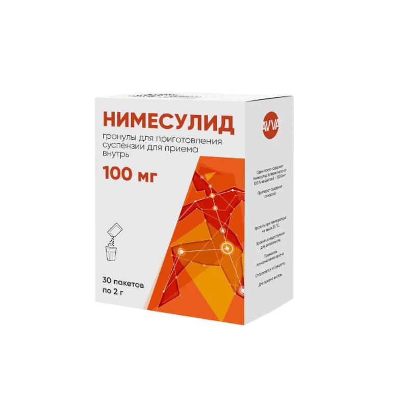 Нимесил ®, гранулы для приготовления суспензии для приема внутрь, 100 мг, №30 - пакет (пакетик) из алюминиевой фольги, ламинированной полиэтиленом 2 г ( 30 ) - пачка картонная Производитель: Лабораториос Менарини С .А . (Испания)