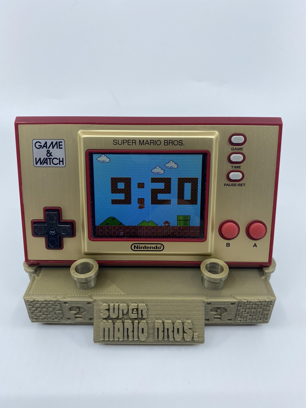 Tap into Nintendo's robust history with this special Game & Watch system that includes the original Super Mario Bros . Game , a digital clock, and more! Play Super Mario Bros . — Game & Watch style . Jump over bottomless pits, stomp Goombas, and enter warp pipes with the same tight controls you remember from the '80s .