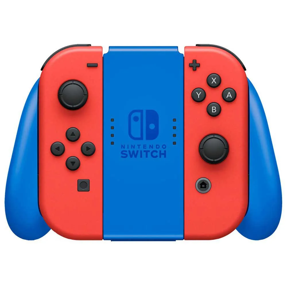 This Nintendo Switch system takes inspiration from Mario , with a bold red design on the Nintendo Switch Console, Joy-Con controllers, and the Nintendo Switch dock . A solid blue design is featured on both the Joy-Con grip and Joy-Con wrist straps . As a bonus, this Nintendo Switch bundle includes a Mario red & blue Edition carrying case adorned with Super Mario iconography .