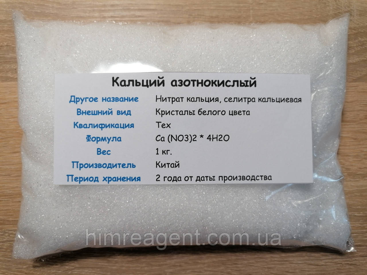 Химическая формула — Са (NО3)2, представляет собой нитрат кальция (другое наименование - азотнокислый кальций), в котором концентрация азота достигает 13% . На вид также очень похожа на поваренную соль, но сильно гигроскопична, хорошо впитывает влагу из воздуха, отсыревает . Хранится во влагонепроницаемой упаковке .