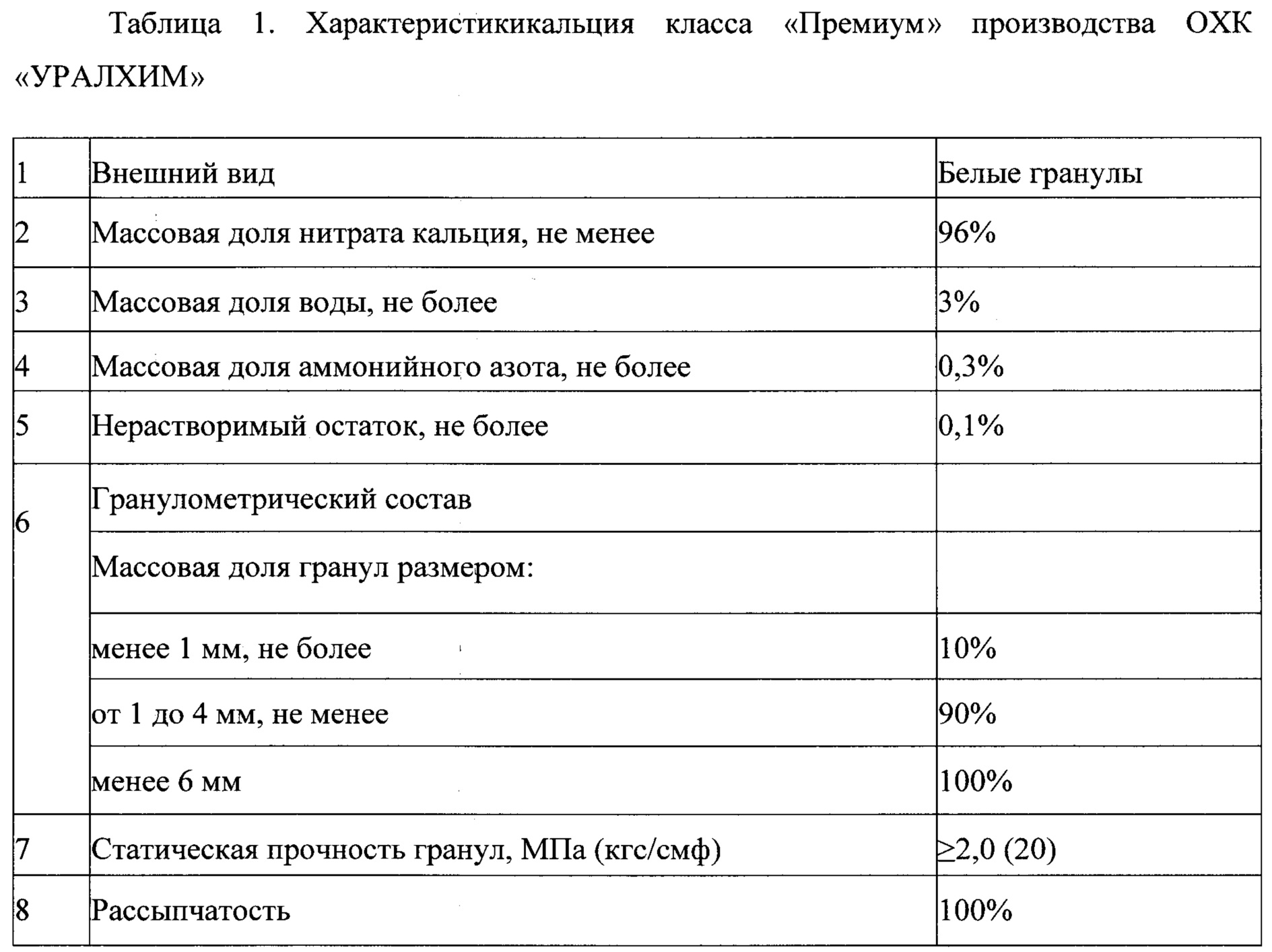 Нитрат кальция таблица