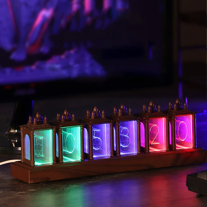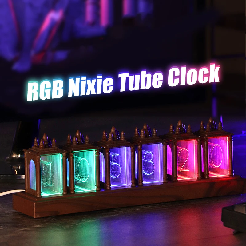 Nixie Tube Clock RGB Glow Full Color Walnut Digital Wooden Clock Electronic Retro Table Clock Desktop Home Decor Gift - Купить с бесплатной доставкой
