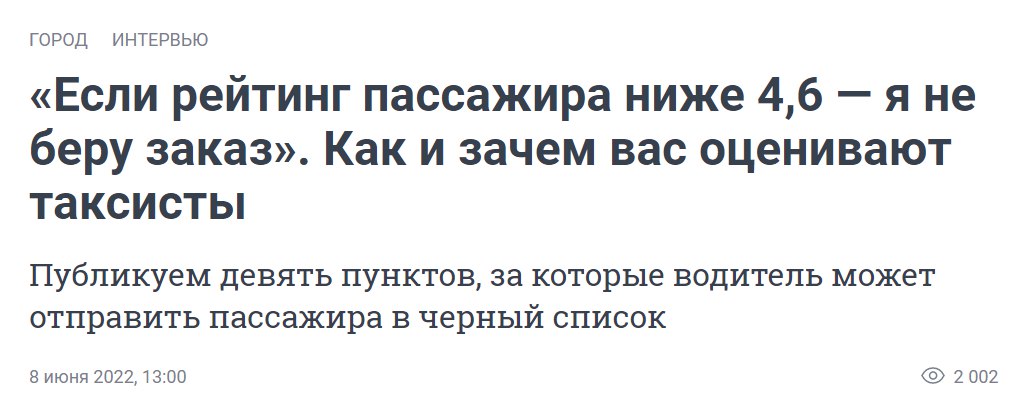 Низкий рейтинг водителя
