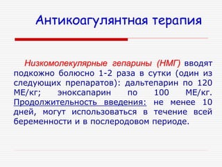 Низкомолекулярные гепарины препараты при беременности