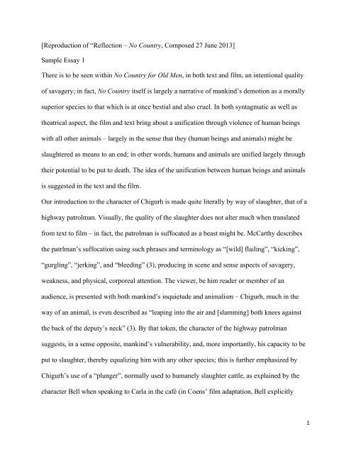 No Country For Old Men Essay - 497 Words | Internet Public . . .