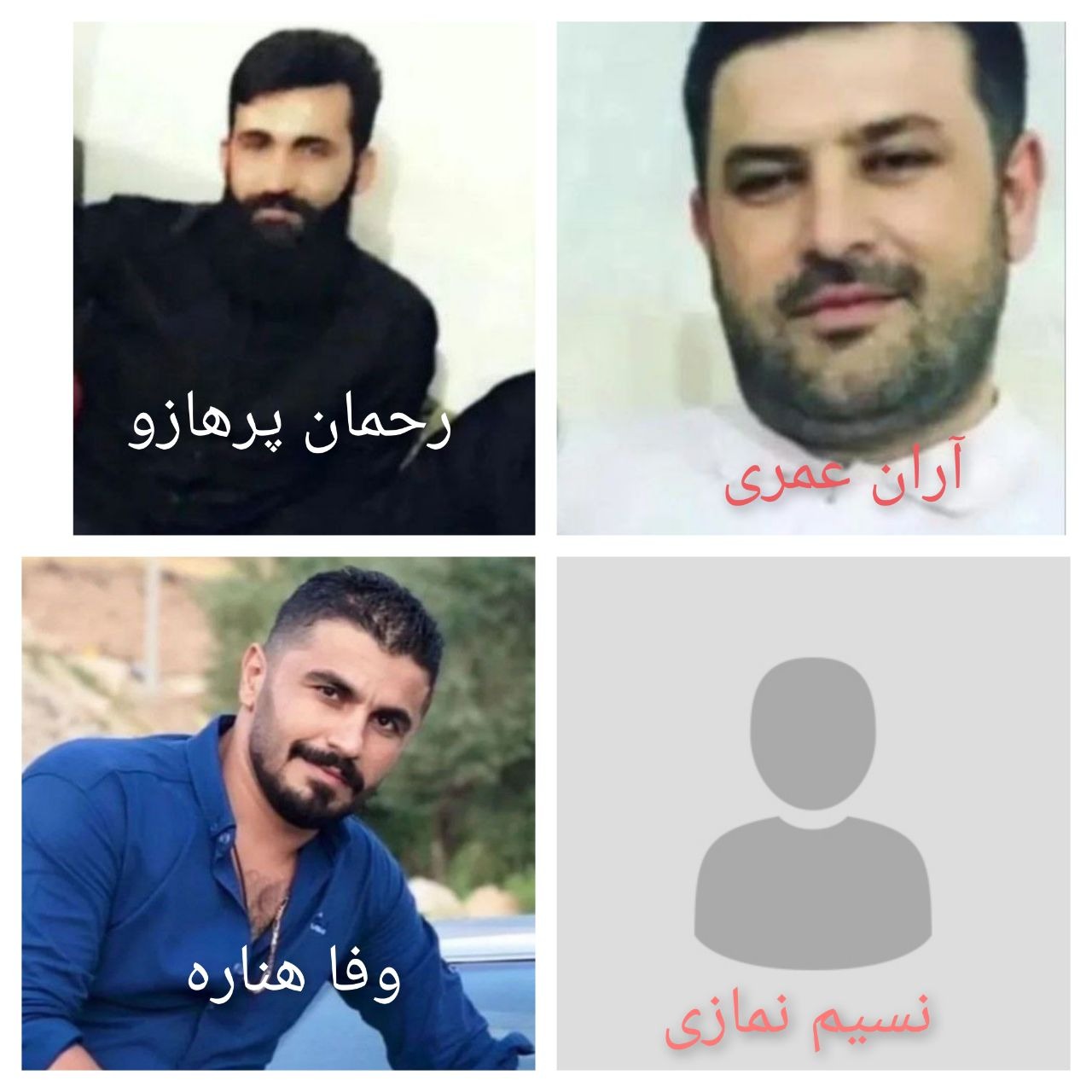 اسامی کسانی که اعدام شدند عبارتند از: آران عمری، وفا هناره و رحمان پرهازو و نسیم نمازی.