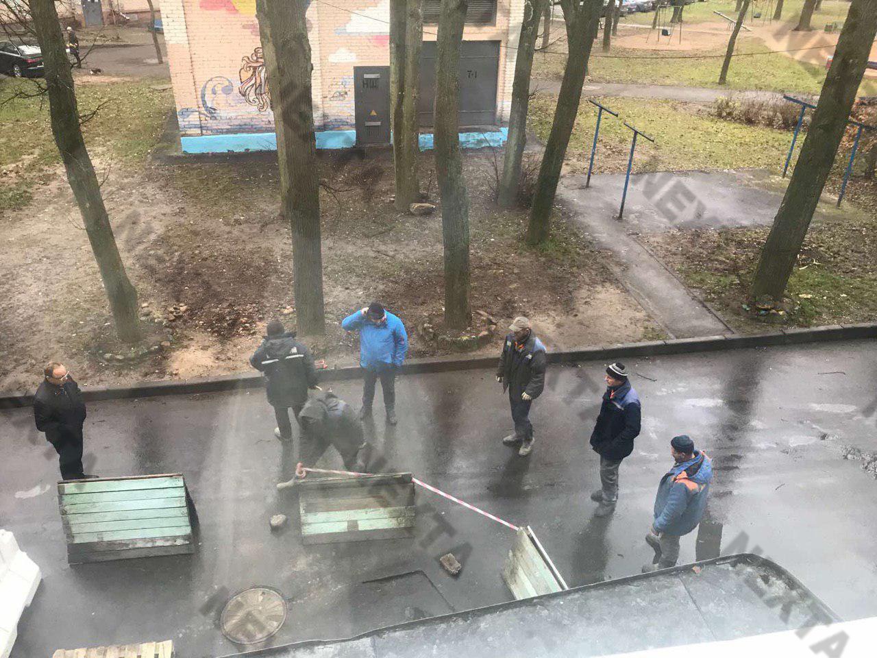 А всего-то в одном из дворов Минска ограждают выбоину в дороге.