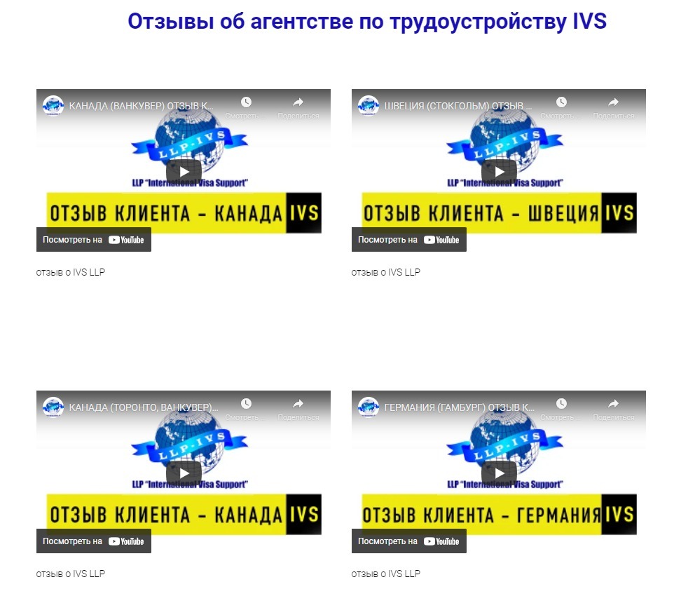 На одном из них несколько видео-отзывов благодарных клиентов из зарубежных стран.