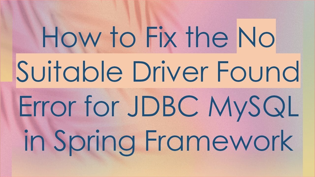 No suitable driver found for jdbc