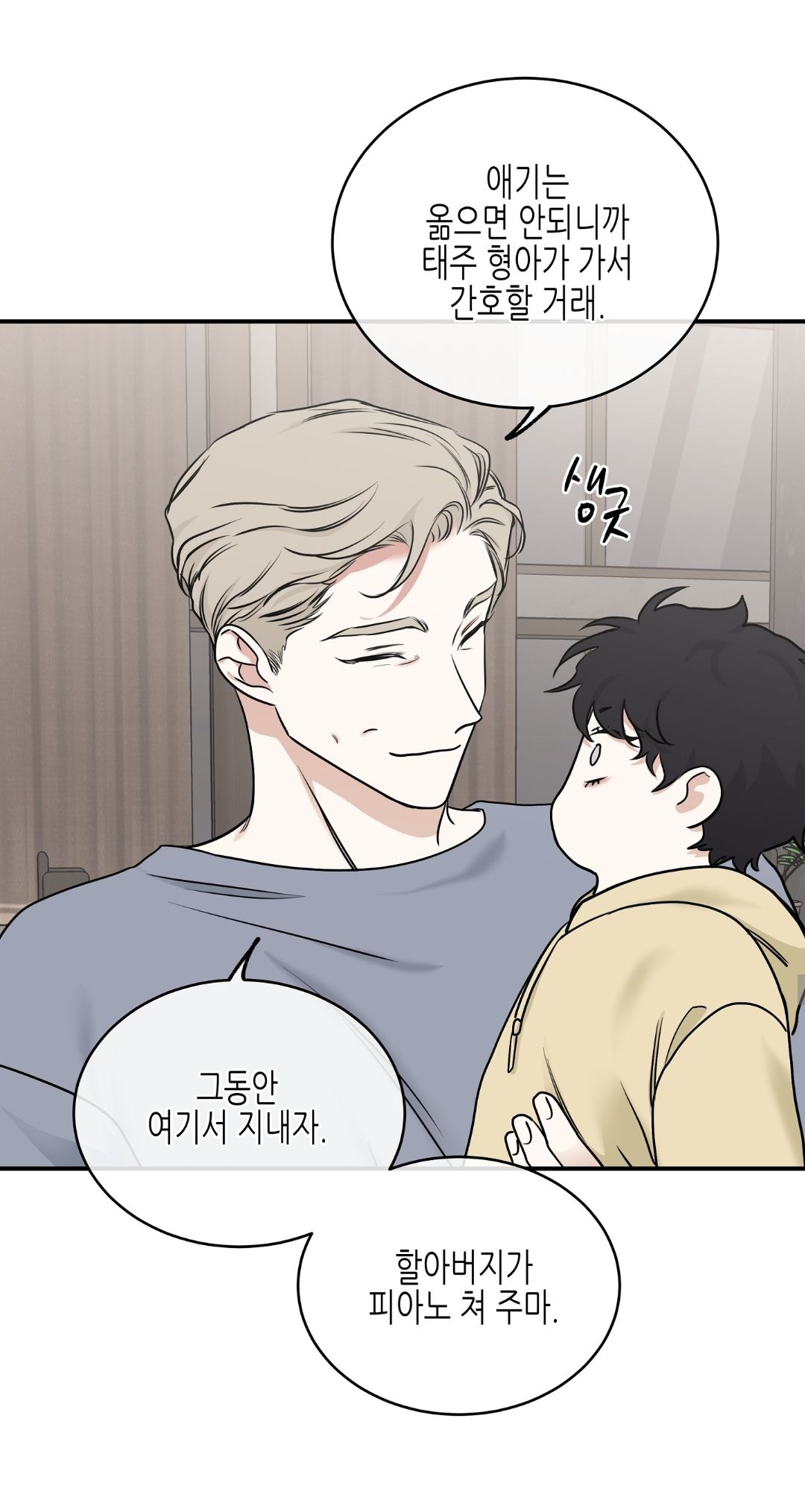 — А домой пока нельзя, только когда Тэджу заберёт его. Давай пока останемся здесь. Дедушка будет играть для тебя на пианино.