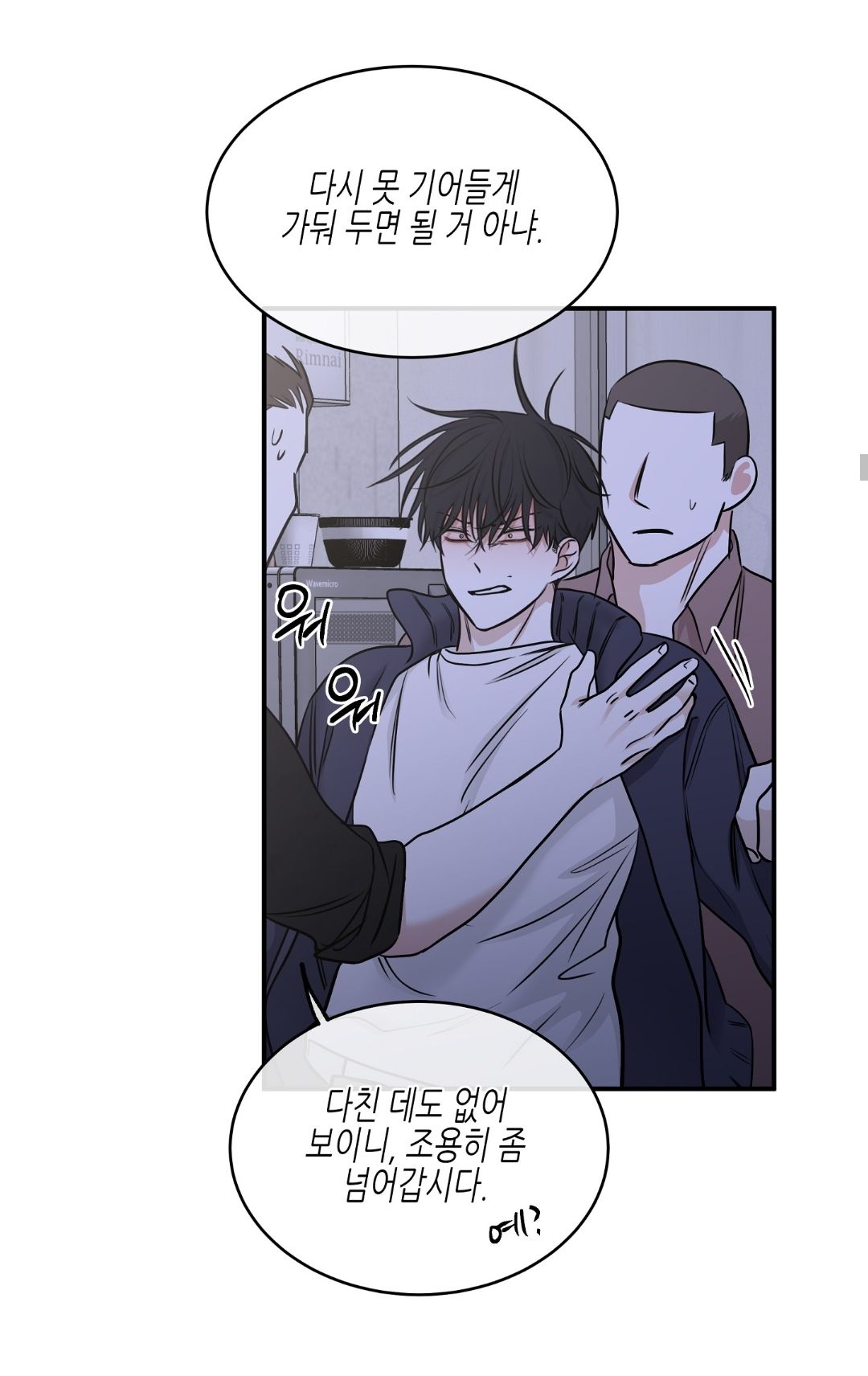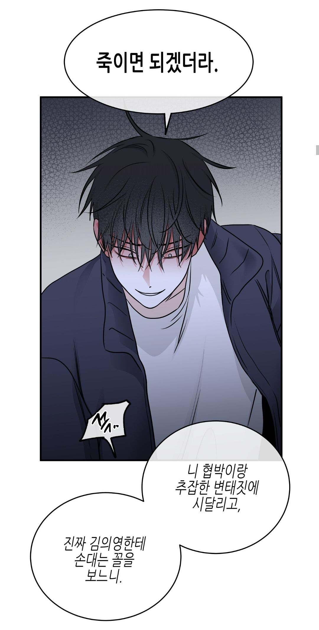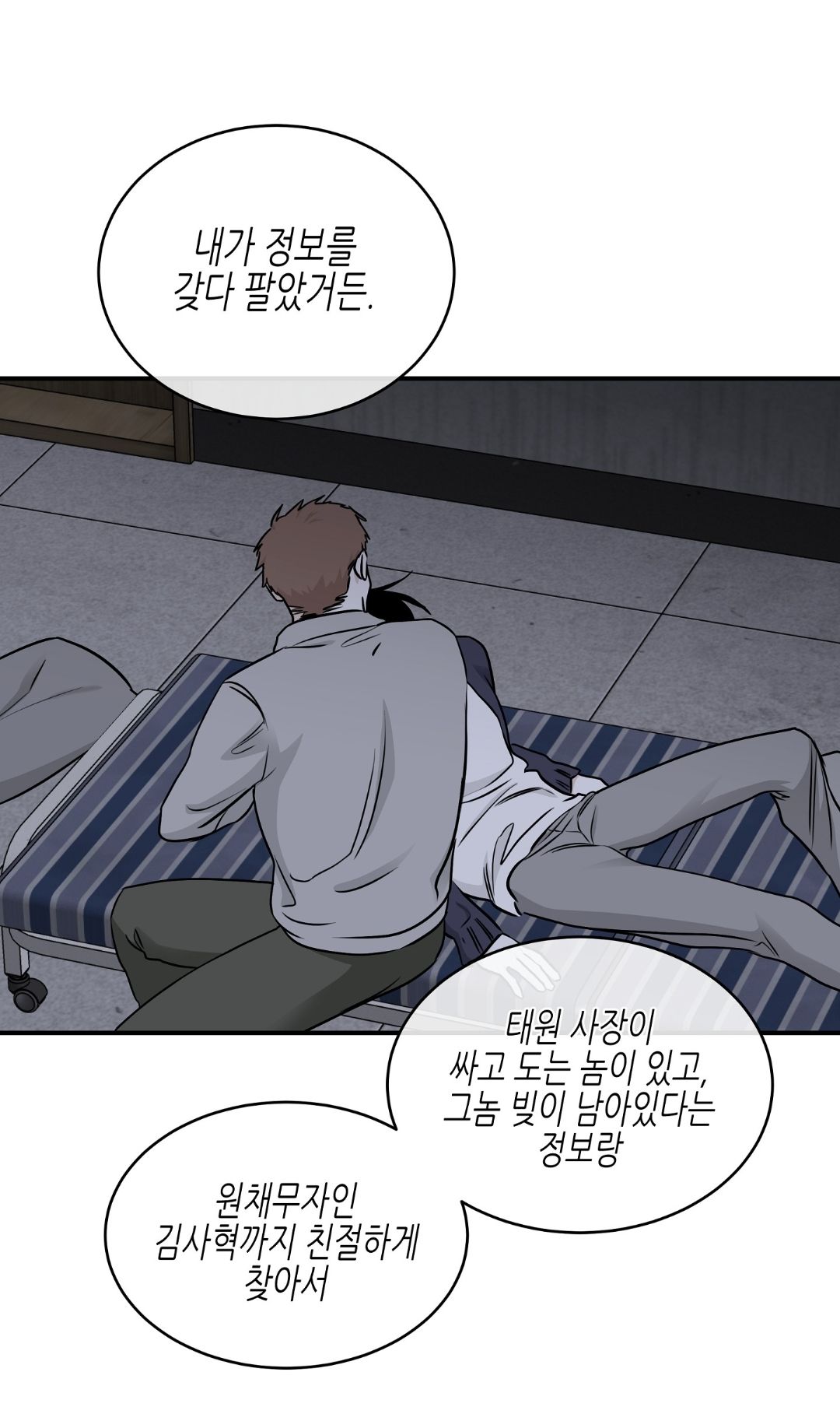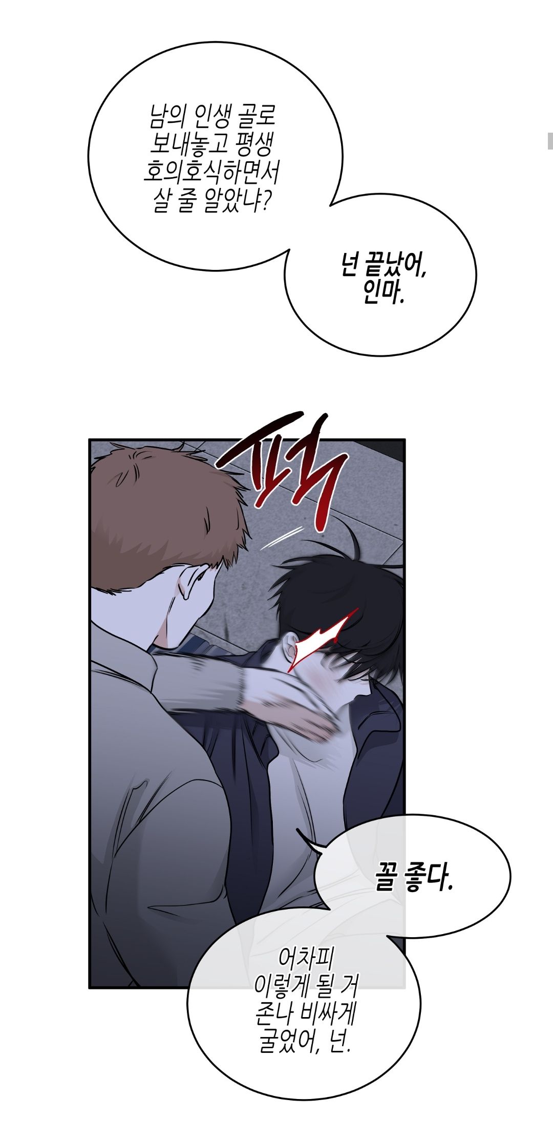 — И какой тебе плюс от такого парня, когда ты всё равно должен долг выплатить? И Ынхва, которые тебя сюда притащили, потонут. Какой нормальный бизнесмен будет заключать многомиллионные сделки с такой шлюхой, как ты?