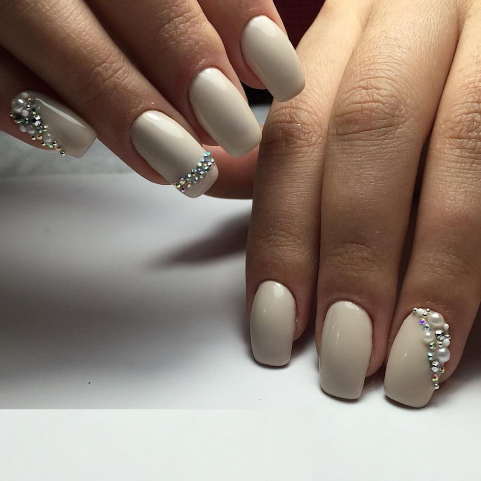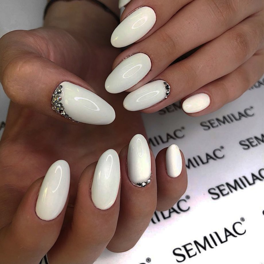Белый маникюр со стразами (47 фото): дизайн ногтей лаком с . . .