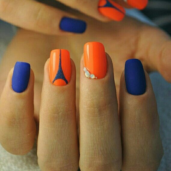 Ногти синий оранжевый