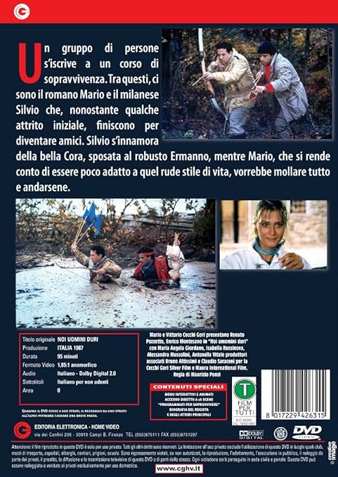 NOI UOMINI DURI . ITALIA - 1987 . Condividi . In mezzo ad un bosco sulle colline dell'Italia Centrale, una quindicina di persone di ambo i sessi seguono un corso di addestramento alla sopravvivenza . Tra gli altri fanno coppia Mario, un tranviere romano separatosi dalla moglie e Silvio, un giovane banchiere milanese . Di . . .