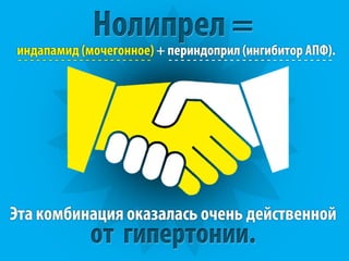 Нолипрел . Нолипрел — лекарство от давления комбинированного действия, т . е . в состав этой таблетки входят два разных вещества, которые действуют одновременно . Эти вещества — периндоприл и индапамид — относятся к разным классам препаратов от гипертонии . Индапамид — это . . .