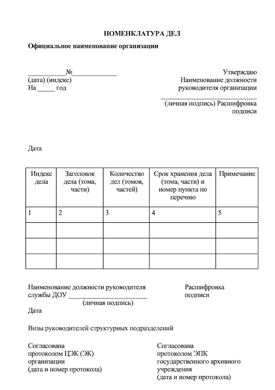 Номенклатура дел номера