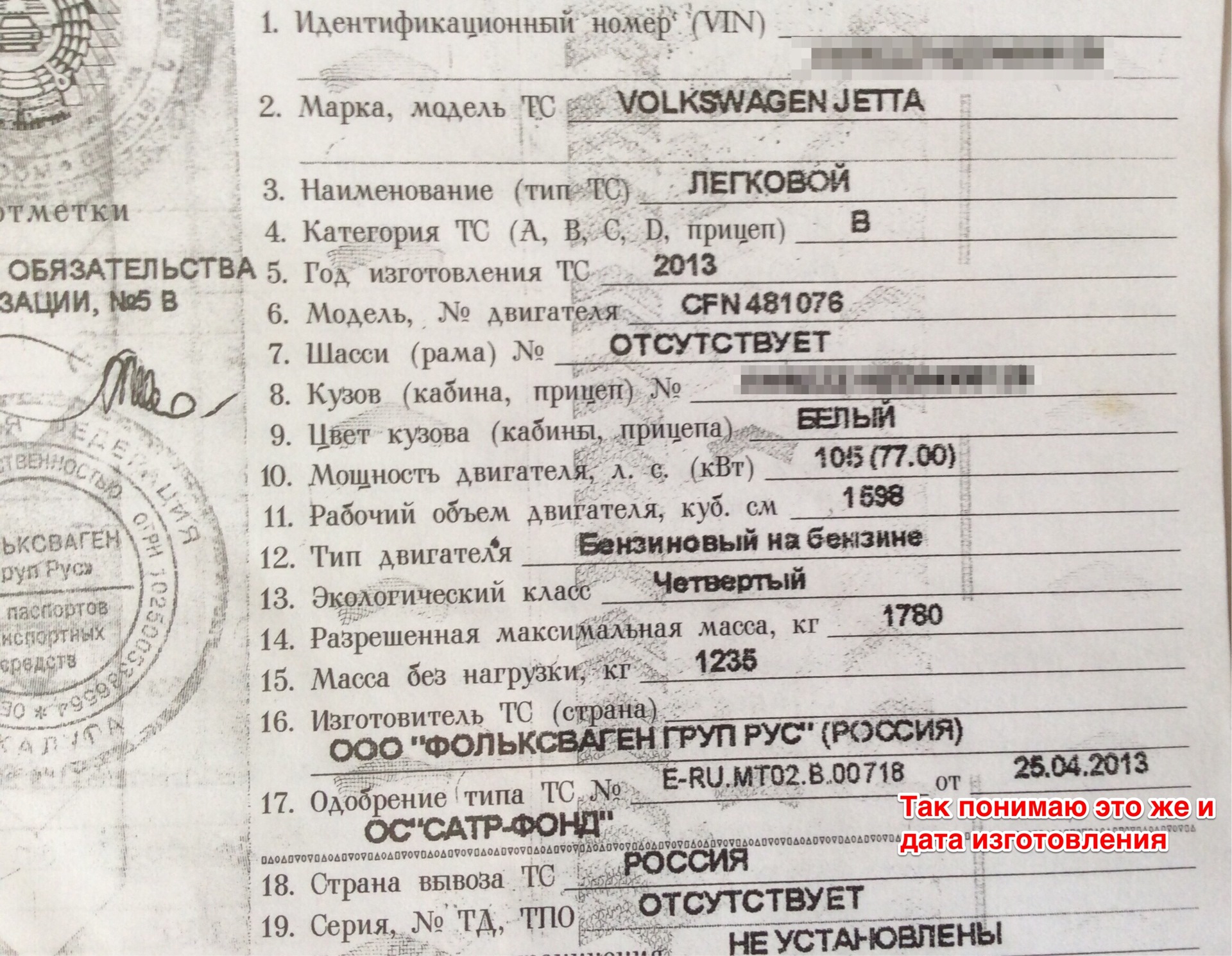 Номер двигателя в птс пример 108 фотографий