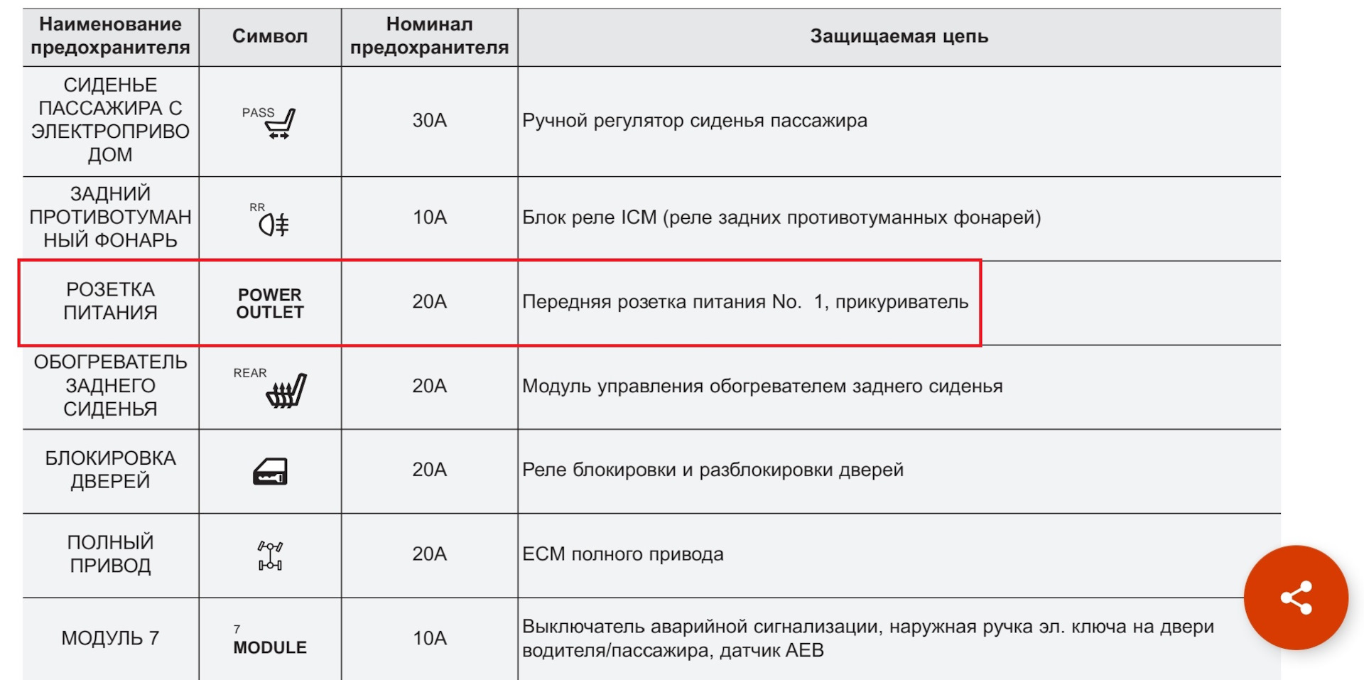Номер предохранителя прикуриватель гранта