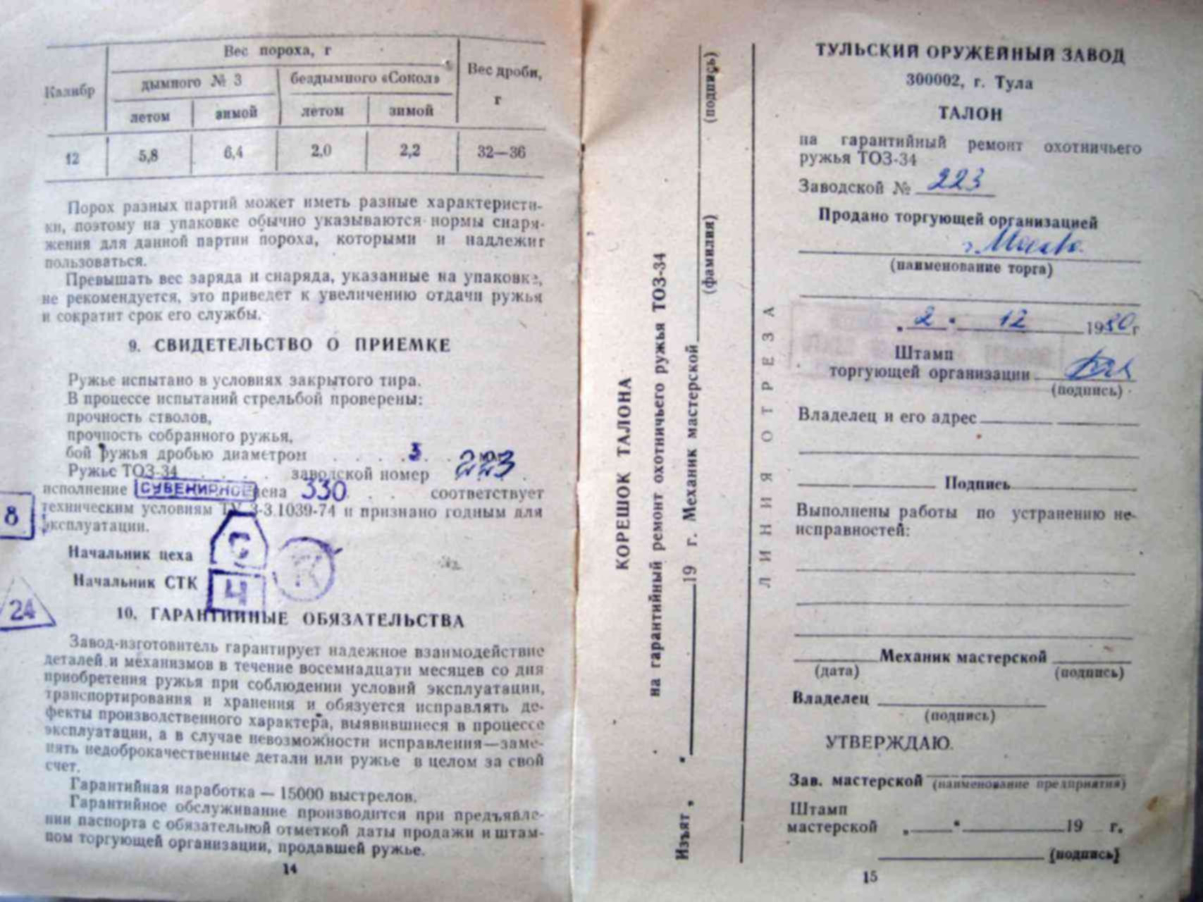 Номер ружья тоз